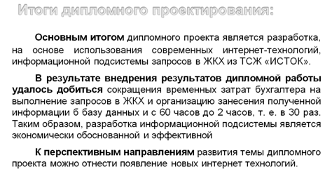 Рисунок Б.9 - Слайд №9 "Итоги дипломного проектирования"