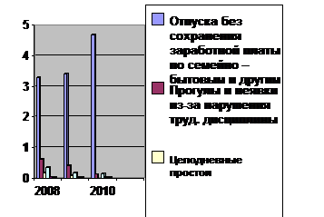 2009г. и в 2010г., снизились и целодневные простои, число случаев прогулов и