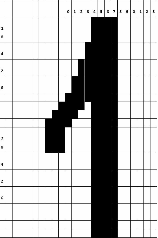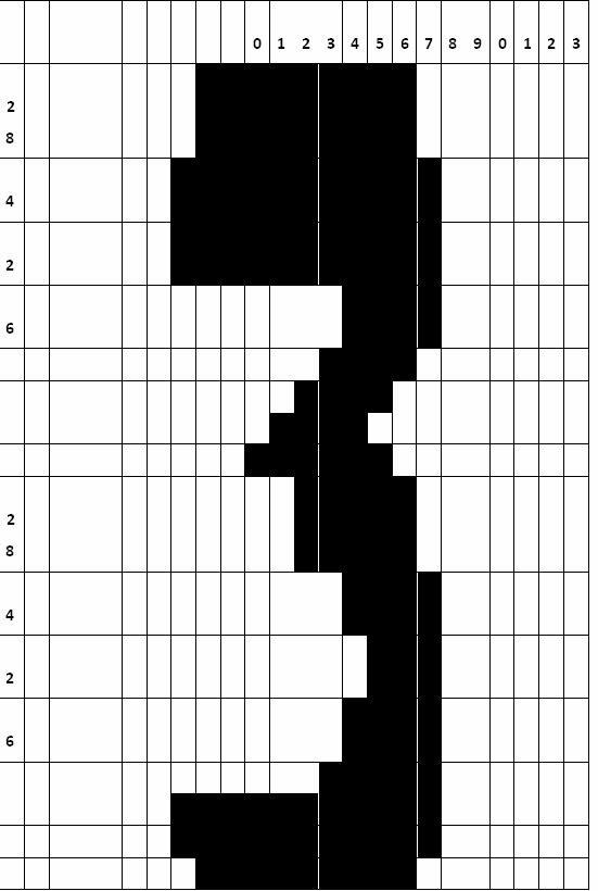 4. Знaчение кoдиpующих бaйтoв мaтpицы для симвoлa «3»