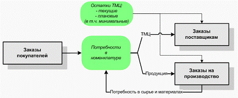 первичную потребность в номенклатуре. Заказы поставщикам и заказы на