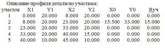 Рисунок 1.2 - Координаты участков профиля инструмента