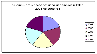 численности безработного населения в РФ за период с 2004 по 2008 год