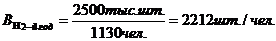 Выработка одного работника, рассчитанная натуральным методом, шт./чел. 2.