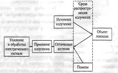 Обобщенная схема лазерной локационной системы (ЛЛС) включает