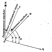 данной точке. Магнитный меридиан в общем случае не совпадает с геодезическим