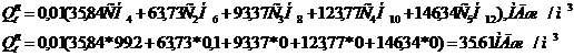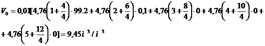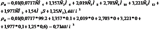 сумма произведений компонента на его объемную долю в 1м3 газа по формуле: