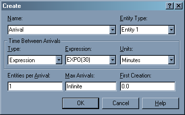 Построим простую имитационную модель в программе Arena на примере рабочей станции. Время поступления