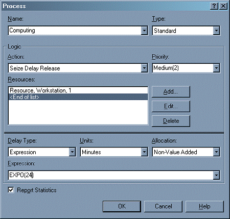Рисунок 4 - Диалоговое окно задания ресурсов в модуле Process