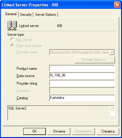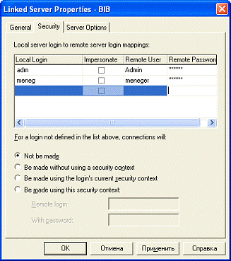 сервере, следует провести настройку связанных серверов. Доступ к данным