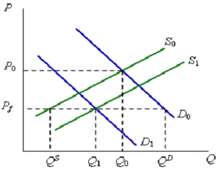 покупателей. На рис. 2 это показано сдвигом линии предложения вправо (S0