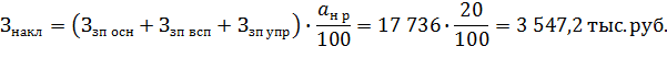 который равен 10…30% от общего фонда з/п производственного персонала. Примем