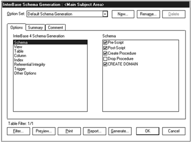 Закладки диалога Schema Generation. Служит для задания опций