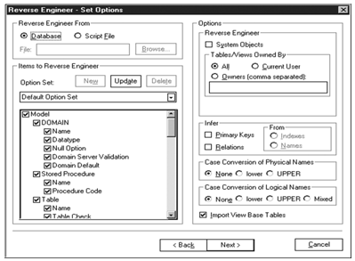 на описанный выше диалог Reverse Engineer Set Options. Разница заключается в