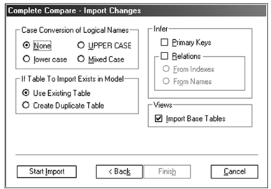 После щелчка по кнопке Next возникает диалог Complete Compare Import Changes, в котором можно задать