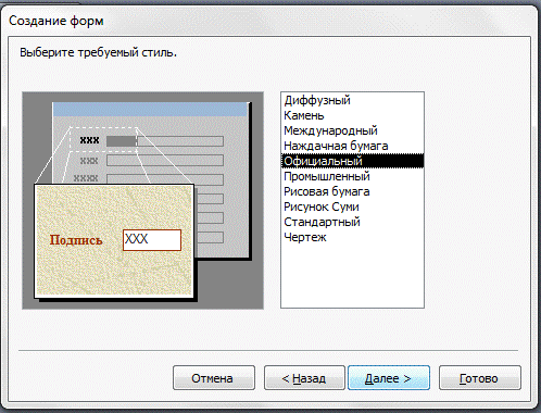 Средствами СУБД Microsoft Access создан удобный пользовательский