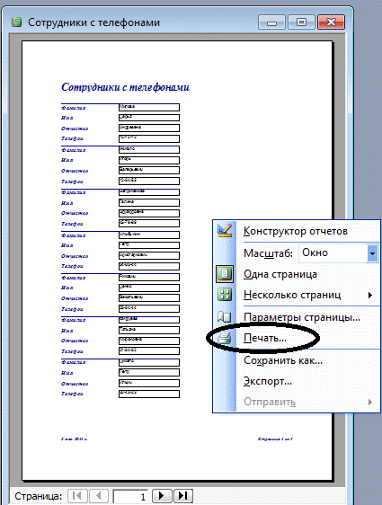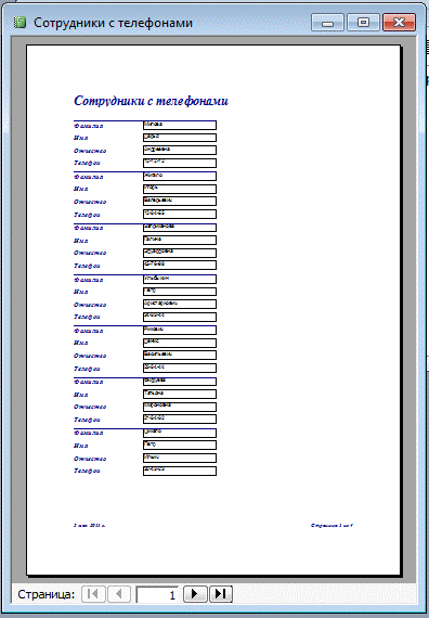 . Сотрудники с телефонами - показывает список сотрудников (их фамилию,