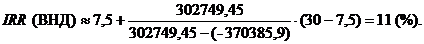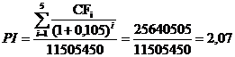 инвестиционных затрат 2,07, внутренняя норма доходности 11%.