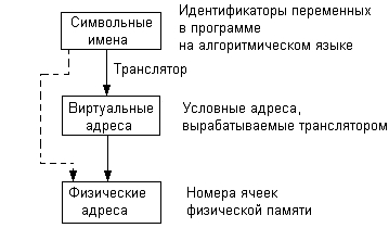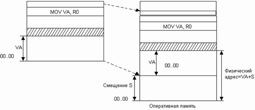 полученных в результате компиляции и компоновки программы, в физичеcкие адреcа