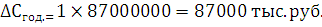 составляет N=87 ГВт = 87000000 кВт, найдем себестоимость на 1 продукции:
