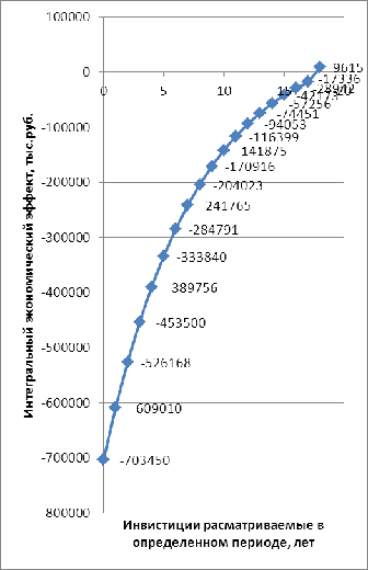 года. Интегральный экономический эффект составляет 9615 тыс. руб. (NPV>0),
