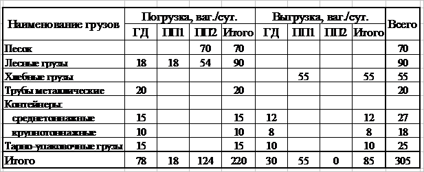 Таблица 1.1 - Объемы грузовых вагонопотоков станции К