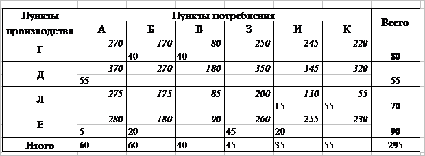 Таблица 1.2 - Прикрепление поставщиков к потребителям для песка
