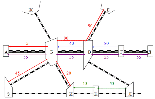 маршрутами. Анализ диаграммы вагонопотоков показал: