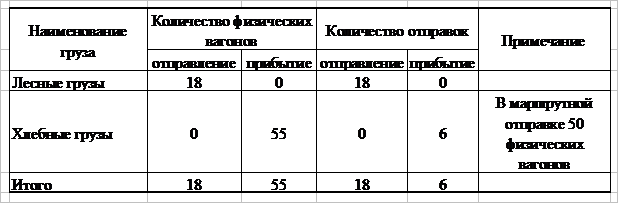 Объем погрузки на станции К составил 220 физических вагонов в сутки, в