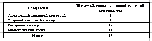 Рассчитан штат работников товарной конторы, который составил 29 человек.