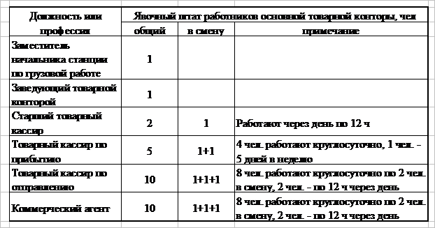 международном сообщении, рассчитывается штат работников товарной конторы, и