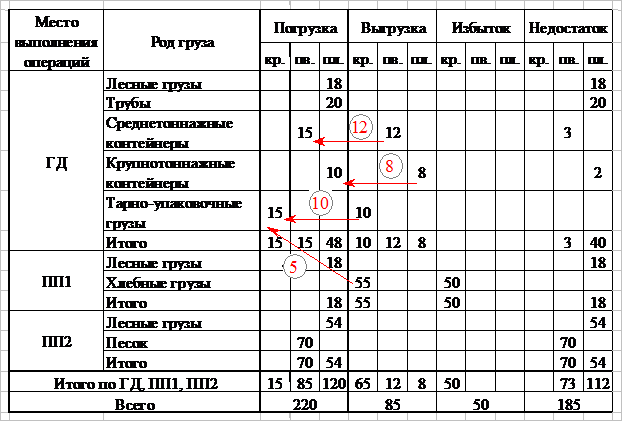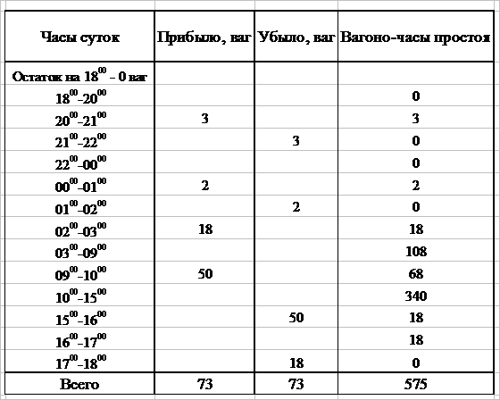 3.3.1 Составление балансовой таблицы регулировки порожних