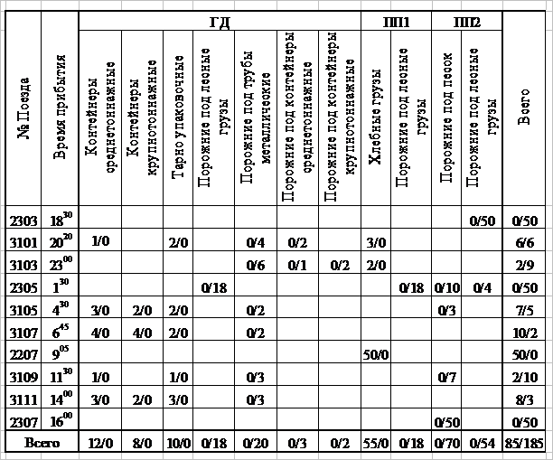 - 124, на грузовом дворе (ГД) - 78 вагонов в сутки.