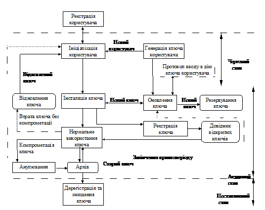 життєвий цикл управління ключами. На рис. 3. поданий життєвий цикл управління