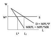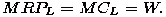 выгодно нанимать работников при соблюдении равенства MRPL = w.