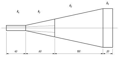 участка, сужающегося участка (сечение плавно меняется от круглого до сечения,