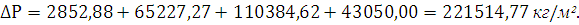 Общие потери давления в оформляющей головке, кг/м2: