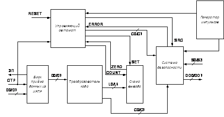 Состоит из счётчика и формирователя сигнала ZERO. По сигналу SET (срез такта в окончании состоянии a0) устанавливает своё начальное значение, полученное в