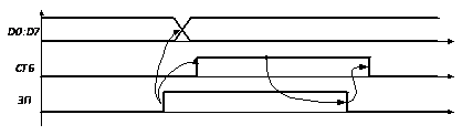 чего устройство ожидает сигнал СТР, по которому считывает байт данных. Из