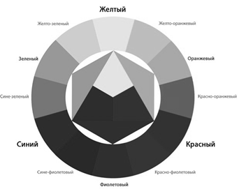 красной, синей и желтой. Исходя из этого, в круге представлены: треугольником
