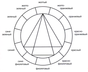 СКЖ - первичные цвета, перевернутым треугольником ФОЗ показаны смешанные цвета