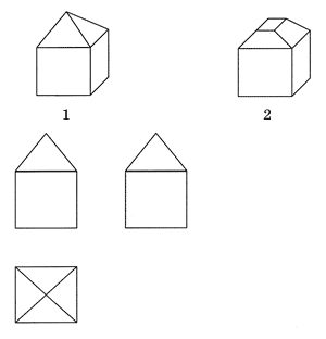 изображен на чертеже. Помоги гному, выбери нужный рисунок домика и изобрази