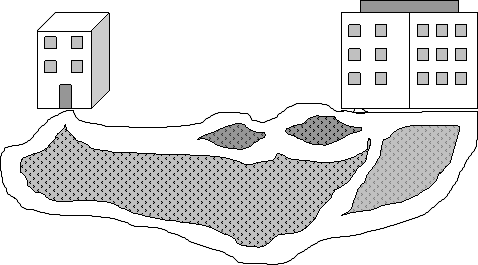 . Два дома соединены пешеходными дорожками.