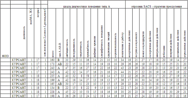 Объектом исследования является - группа курсантов ВВУЗа 1го года