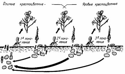 грибами (например, Plasmodiophora brassicae, виды Alternaria) и насекомыми,