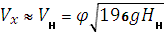 коэффициент скорости, зависящий от профиля сопла; g - ускорение силы тяжести, м/с2; Нн - напор