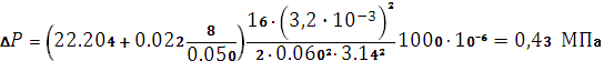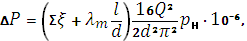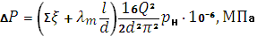 коэффициентов местных сопротивлений по длине трубопровода на участке длиной l с диаметром трубы d;