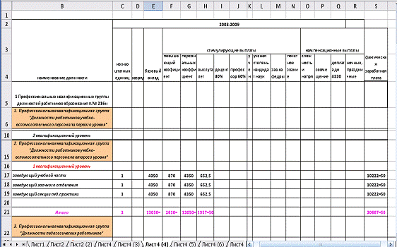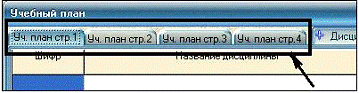 части установлены четыре вкладки: "Уч. план стр.1", "Уч. план