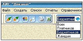 выпадающих меню (свитка), каждое из которых является перечнем групп.