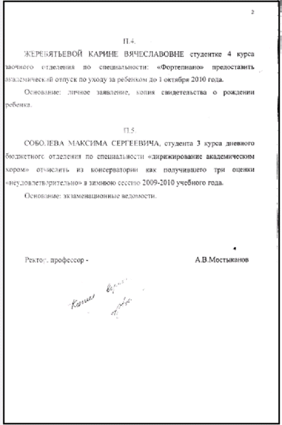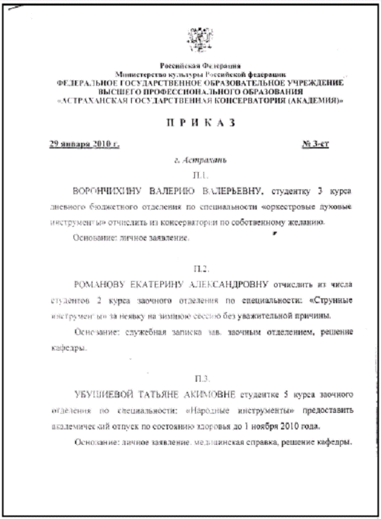 в деканатах ФГОУ ВПО "Астраханская государственная консерватория".