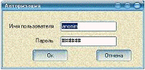 окно Авторизации, в котором необходимо ввести имя и пароль пользователя.